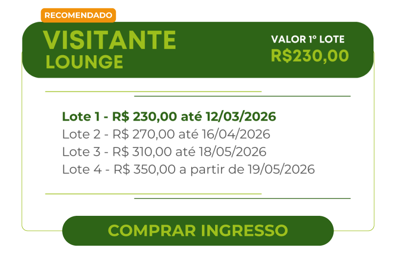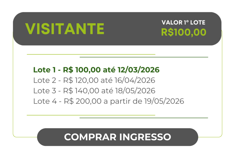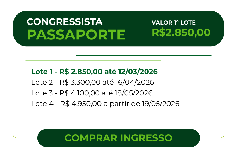 | | Benefícios Visitante Lounge | Benefícios Congressista One Day | Benefícios Congressista Full Pass | Benefícios Congressista Passaporte |